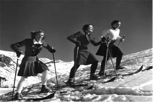 20世紀(jì)初期,滑雪服基本上還是以日常服裝為主,簡(jiǎn)潔利落。平日喜歡穿著短裙的女性,在滑雪時(shí)也要穿著長(zhǎng)褲和防風(fēng)夾克。