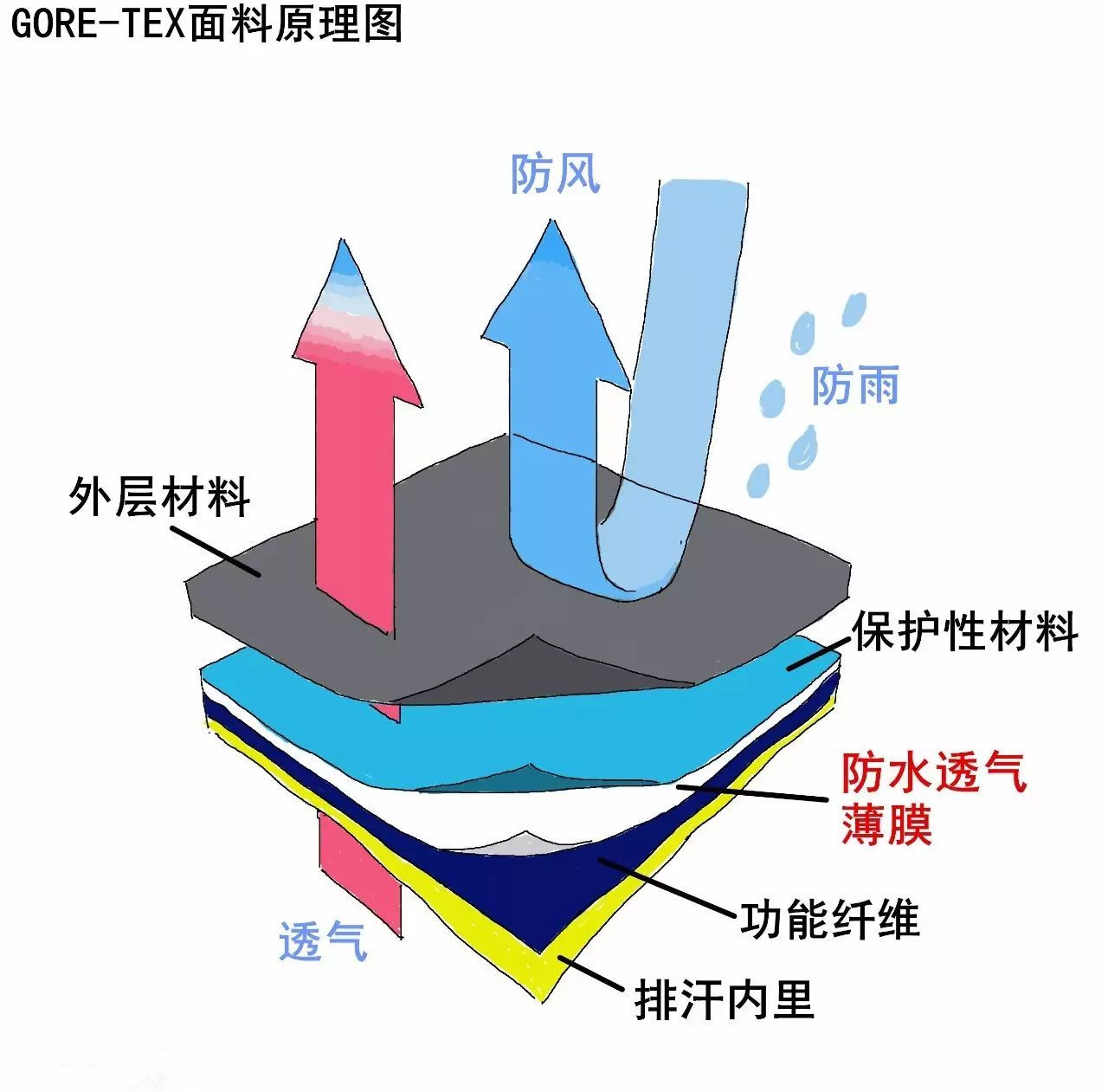 即使今天沖鋒衣的主流面料名字各不相同,但是薄膜都是防水透氣的關(guān)鍵。