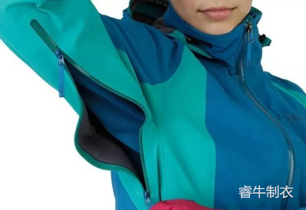 多數(shù)沖鋒衣都有設(shè)計(jì)在腋下散熱拉鏈的,它的作用是讓使用者在戶外活動(dòng)中,根據(jù)實(shí)際使用情況調(diào)節(jié)服裝內(nèi)的溫度。對(duì)于專業(yè)沖鋒衣來說,拉鏈一般都采用防水功能的產(chǎn)品。而滑雪服因?yàn)槠溥\(yùn)動(dòng)的特點(diǎn),一般是把拉鏈設(shè)計(jì)在胸口附近或者上肢的前方。和沖鋒衣的相同的是。滑雪服的高檔產(chǎn)品也使用防水拉鏈。