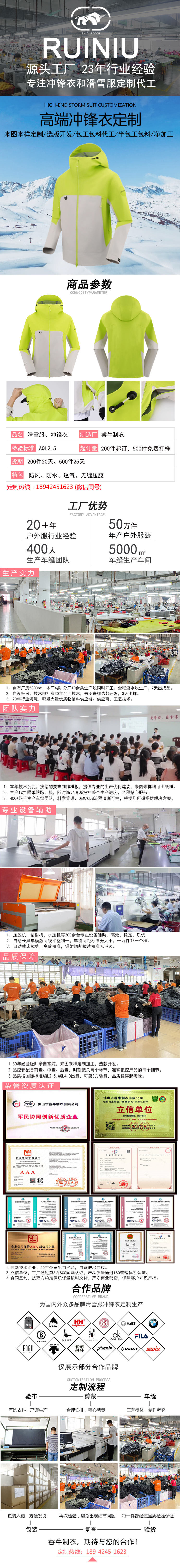 沖鋒衣工廠來圖來樣定制加工硬殼沖鋒衣